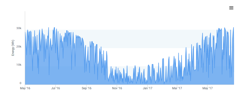 Yesterday BC set a new record for solar energy production. There were clear skies over much of the province on one of the longest days of the year. Many of our solar energy systems recorded the highest generation of the past 12 months. On-line real time monitoring and data logging allows us to view production and compare it with previous periods.