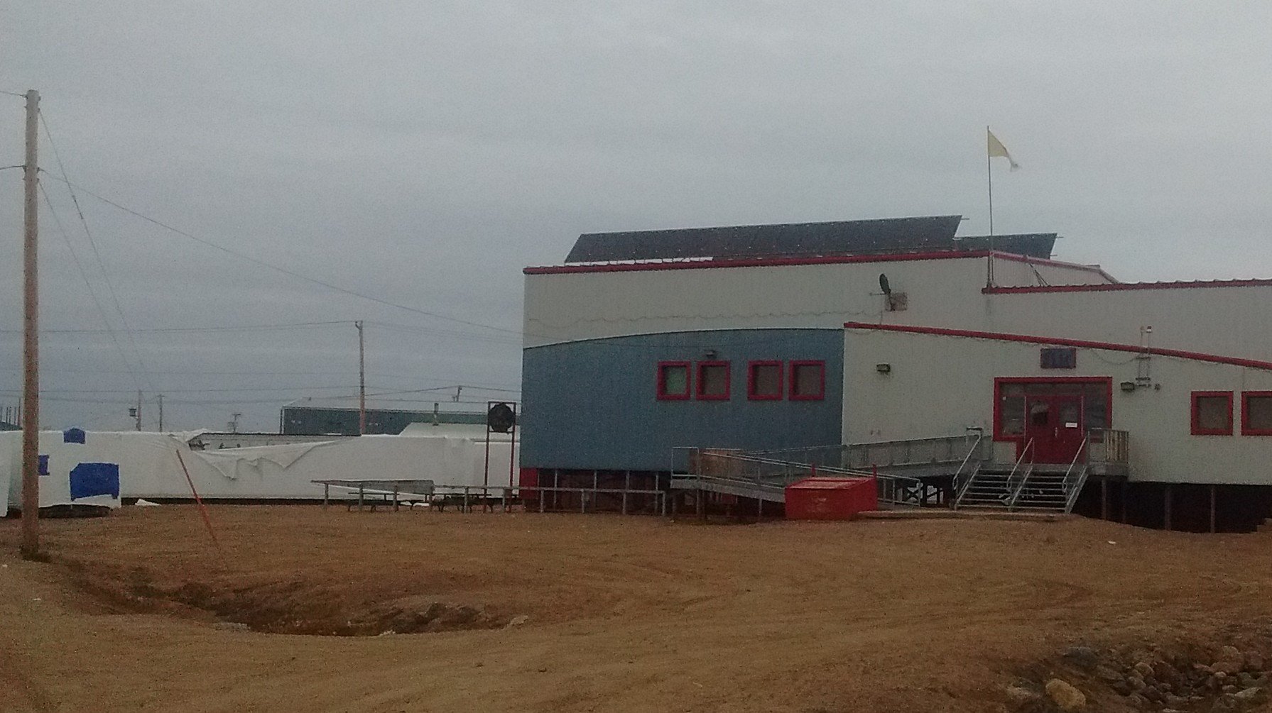 Pond Inlet, a remote hamlet of about 1500 which sits at 72 degrees north latitude, relies on fossil fuels for all of its electrical and heating needs. A diesel tank farm and generator plant distribute stable electrical current onto a power grid that otherwise resembles that of most Canadian communities. While diesel, shipped up on a tanker each summer, is still the primary energy source for the Community Hall and all other buildings, the photovoltaic panels allow the Community Hall to draw less diesel power throughout the Arctic summer, thus saving significantly on their high energy bills. An upcoming net metering structure in Nunavut will allow extra electricity generated to be “sold” back to the utility, QEC, for a credit. The Community Hall and attached arena have significant baseline electrical loads, however, so they would rarely have excess power to sell back. This system allows all power generated to be used without the need for costly batteries.